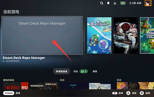 - 进入游戏模式,找到 Steam Deck Repo Manager 就可以运行它了。